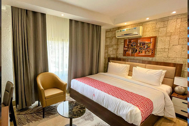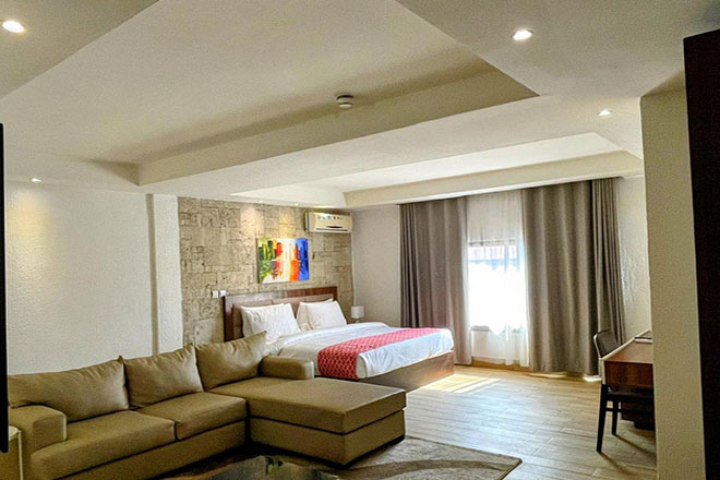 Sun Heaven Hotel Umuahia is a luxury hotel with an exquisite sense of Class and Hospitality. The hotel is located within the prestigious in Umuahia. Sun Heaven Hotel Umuahia is an ideal location for guests on business and leisure trips, with close proximity to Embassies, Banks, Multinationals and the Financial nerve centre. At Sun Heaven Hotel Umuahia, every room is comfortable and well furnished with a beautiful interior. The gym is fully equipped and the Pool complements it. A variety of local and international delicacies are severed in the restaurant. The bar is open to Guests and visitors. Guests enjoy free access to the Gym, Pool, Wi-Fi and complimentary breakfast.